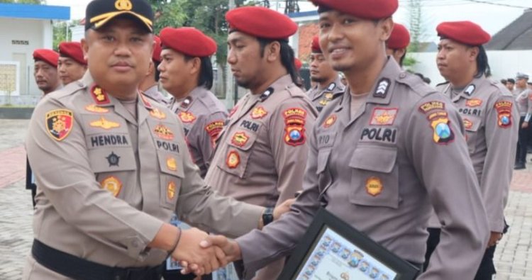 PAMEKASAN - Kapolres Pamekasan AKBP Hendra Eko Triyulianto memberikan penghargaan kepada 13 anggota Satreskrim Polres Pamekasan yang berprestasi.